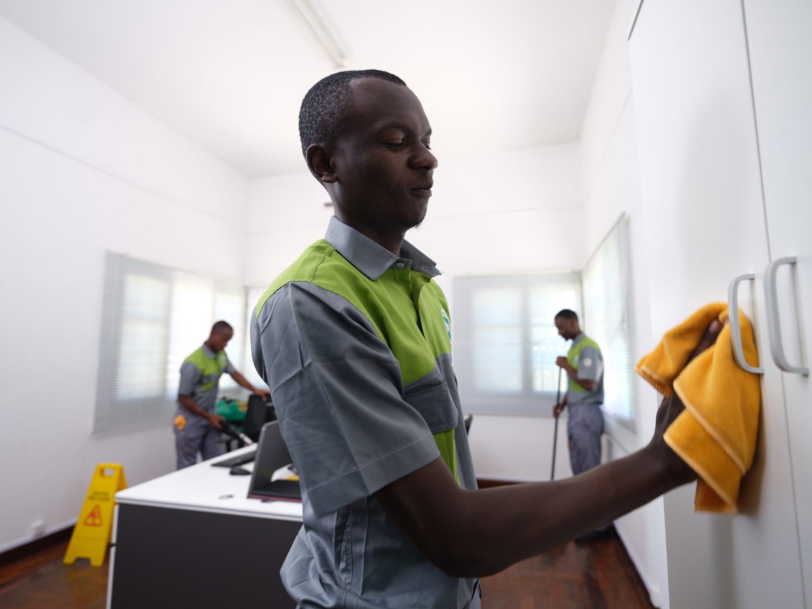 - Limpeza e higienização de mesas, secretárias, cadeiras e equipamentos de uso comum;